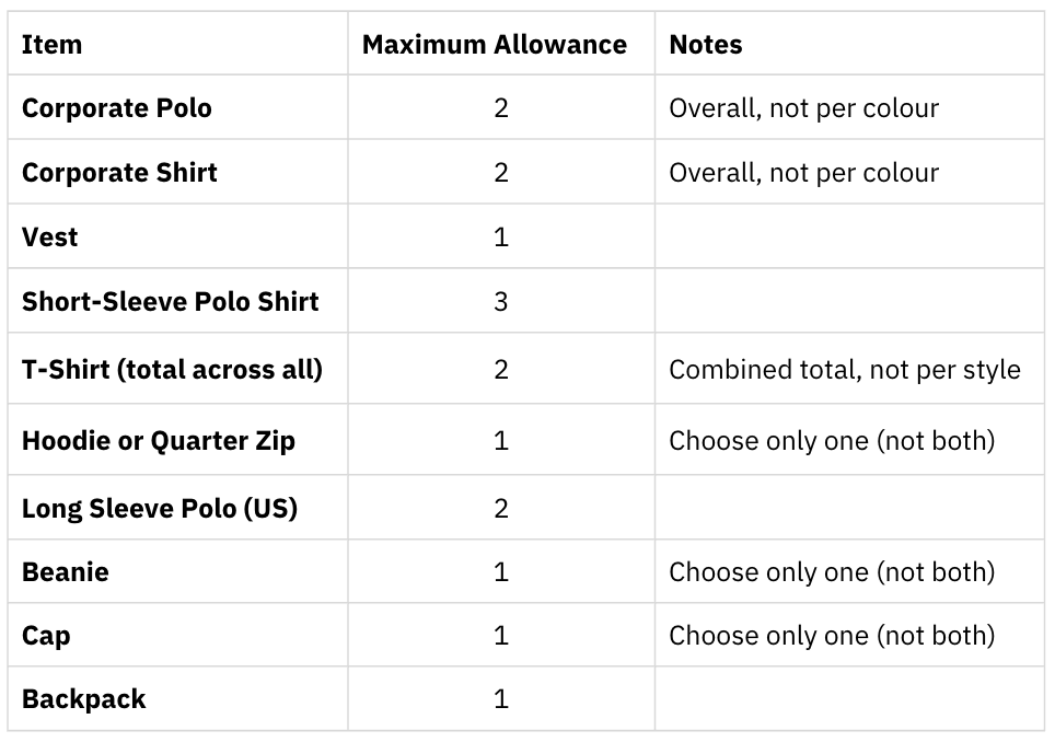 - Staff must only order merchandise they reasonably need for their role.